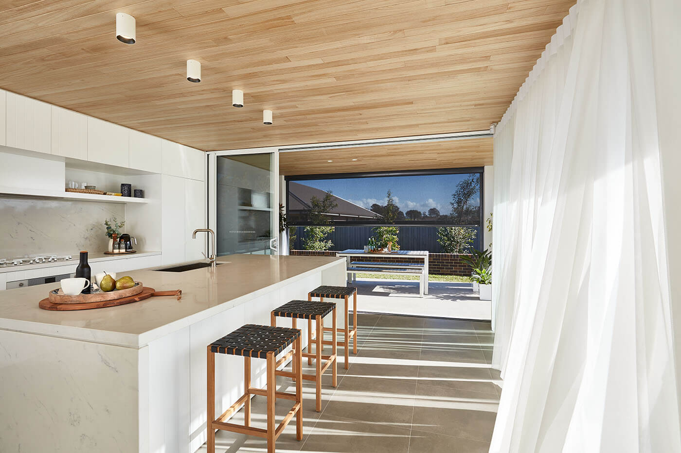 For seamless indoor-outdoor living, conveniently walk through the individual fabric vanes whether they are opened or closed.