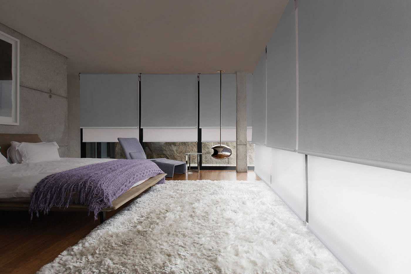 Double Roller Blinds combine the functionality of two different fabrics in the one Roller Blind system for the ultimate light and privacy control. Pair your choice of Blockout fabric with either sunscreen or sheer for a diffused glow during the day and complete privacy and light control during the evening. Double Roller Blinds are ideal for bedroom and living room applications.
