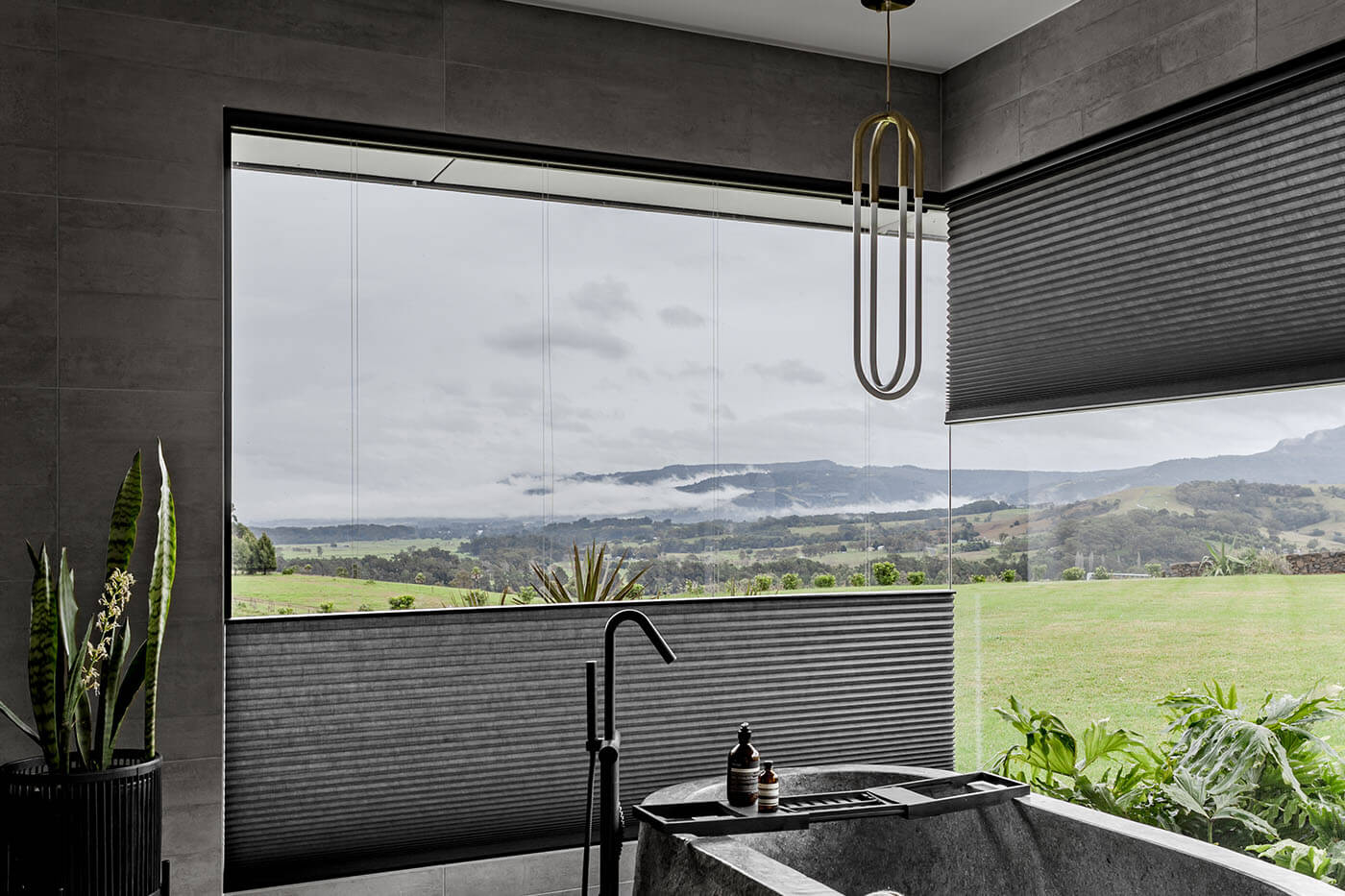 Luxaflex Duette Shades are an ideal solution for bathrooms and other wet areas of the home. Duette shades are 100% polyester and anti-static meaning they repel dust naturally. Translucent Duette shades in a variety of operating options allow for the perfect blend of privacy and light control.