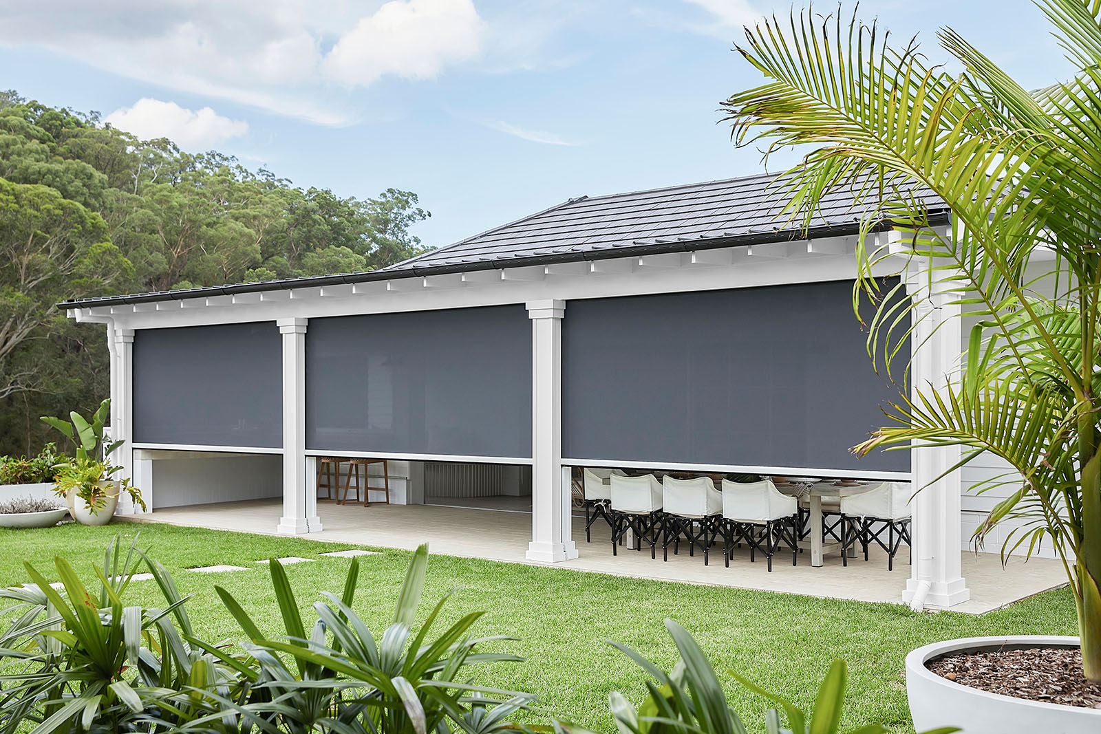 "When we saw the Luxaflex® Evo MagnaTrack Awning and chose to install them, it had a huge impact on our design. We removed our dining space from the internal living plans, and allowed for a larger kitchen and communal area. The Evo MagnaTrack enabled the outdoor dining space to transform into an indoor space as needed; which was a serious game changer in our design."