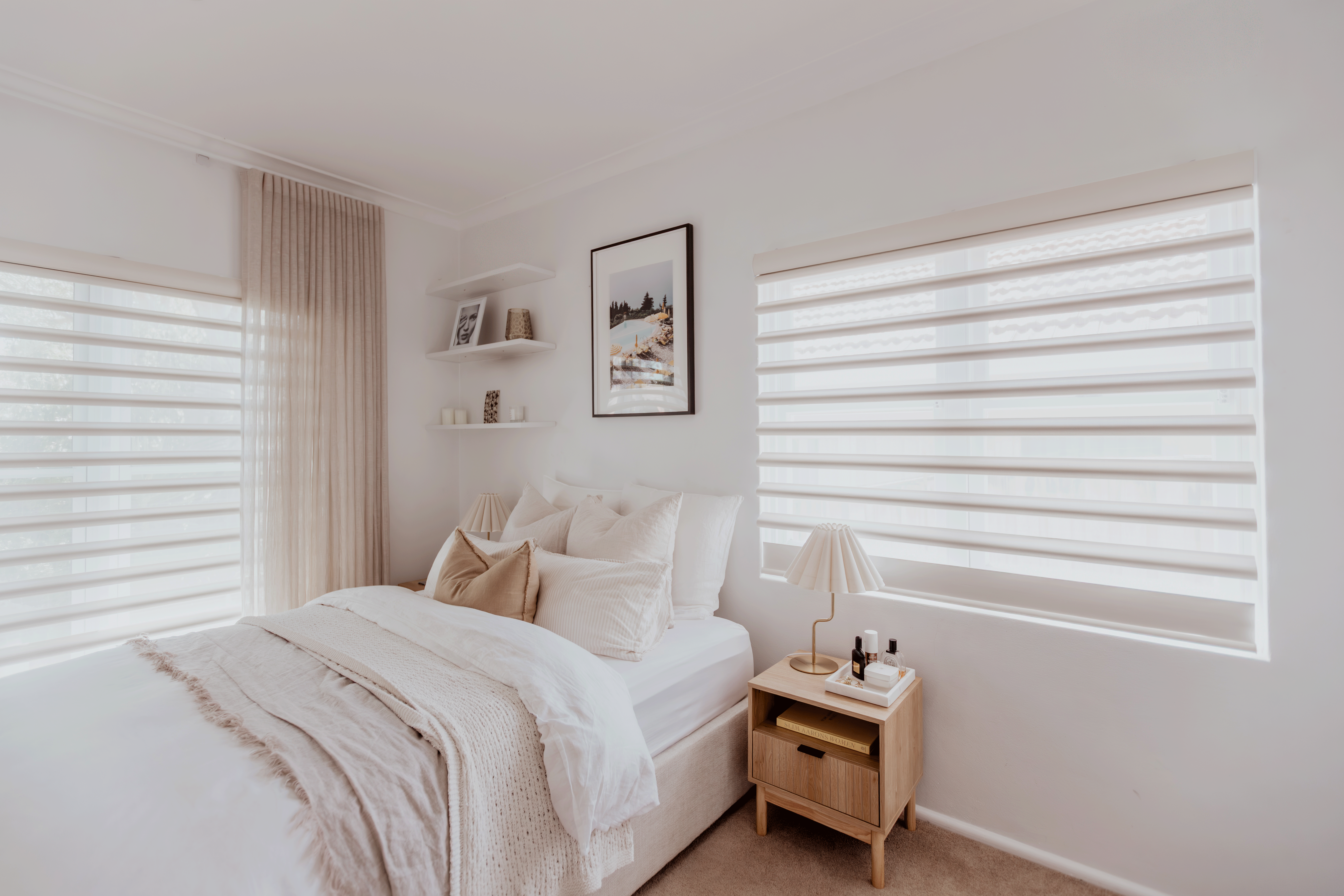 Curtains, shadings and Duette configurations work in harmony, whether controlled room by room or as a unified whole. Mornings begin with natural light gently filling the home. Evenings close with privacy and calm.