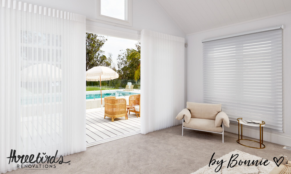 Personally, I love waking up to sunlight beaming on my face, but Erin and Lana are the complete opposite and I suspect most people prefer their bedrooms dark, to allow for those Sunday sleep-ins. If that’s you, you might want to consider ‘blockout’ blinds like the ones Lana chose for Ruby’s room. There are also ‘room darkening’ materials, which are great for TV rooms where glare can be a problem at certain times of the day. Some blinds provide better darkening than others, so if this is important to you, talk to an expert to make sure you get the right product for your needs.