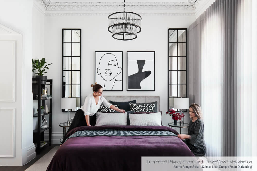 The Block’s Alisa and Lysandra Fraser recently finished a major renovation of a multi-storey heritage home in Melbourne’s Albert Park. The stunning Victorian abode features three bedrooms, three bathrooms, two separate living areas, and even a cinema room and wine cellar. Here they share their insights into how they chose the five unique window covering solutions needed for this beautiful home: