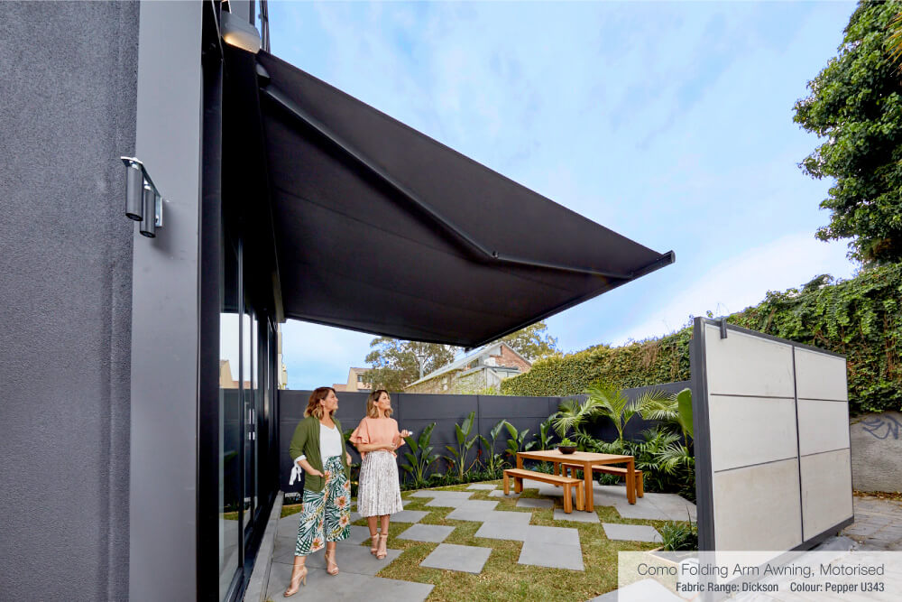 Outside, we installed a Como folding arm awning – the final touch in making this a perfect little oasis in the middle of the city along with a space for parking a car. External shading not only provides shade to enhance time spent in the backyard, it also helps maintain the internal temperature of the house by reducing the heat transfer through windows. When radiant energy from the sun touches an object inside, it gets hot, making the room hot. External shading from awnings can reduce heat transfer through windows by up to 60%1.