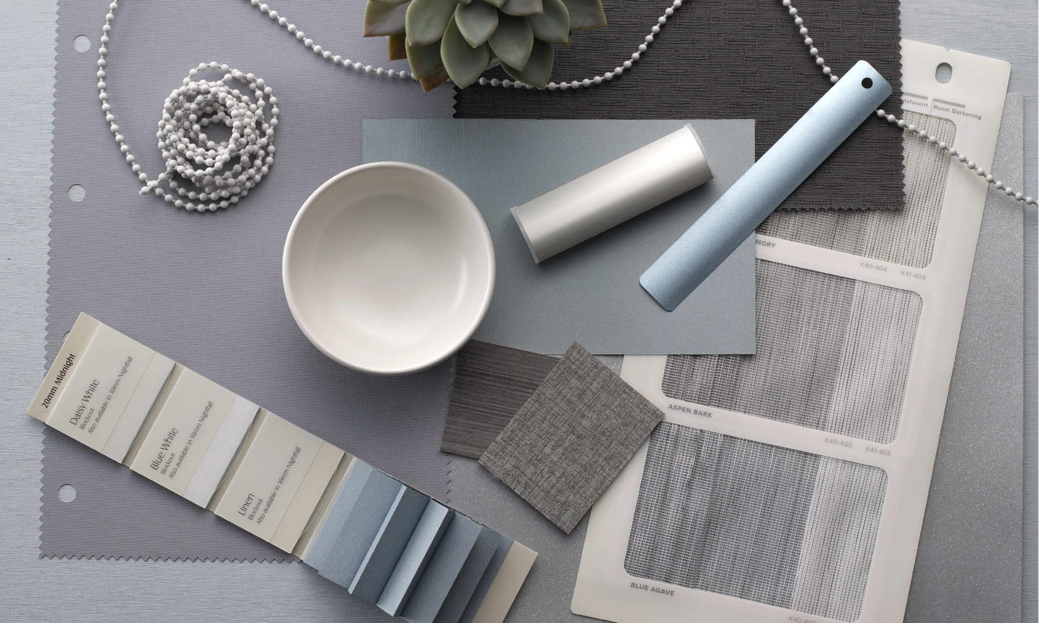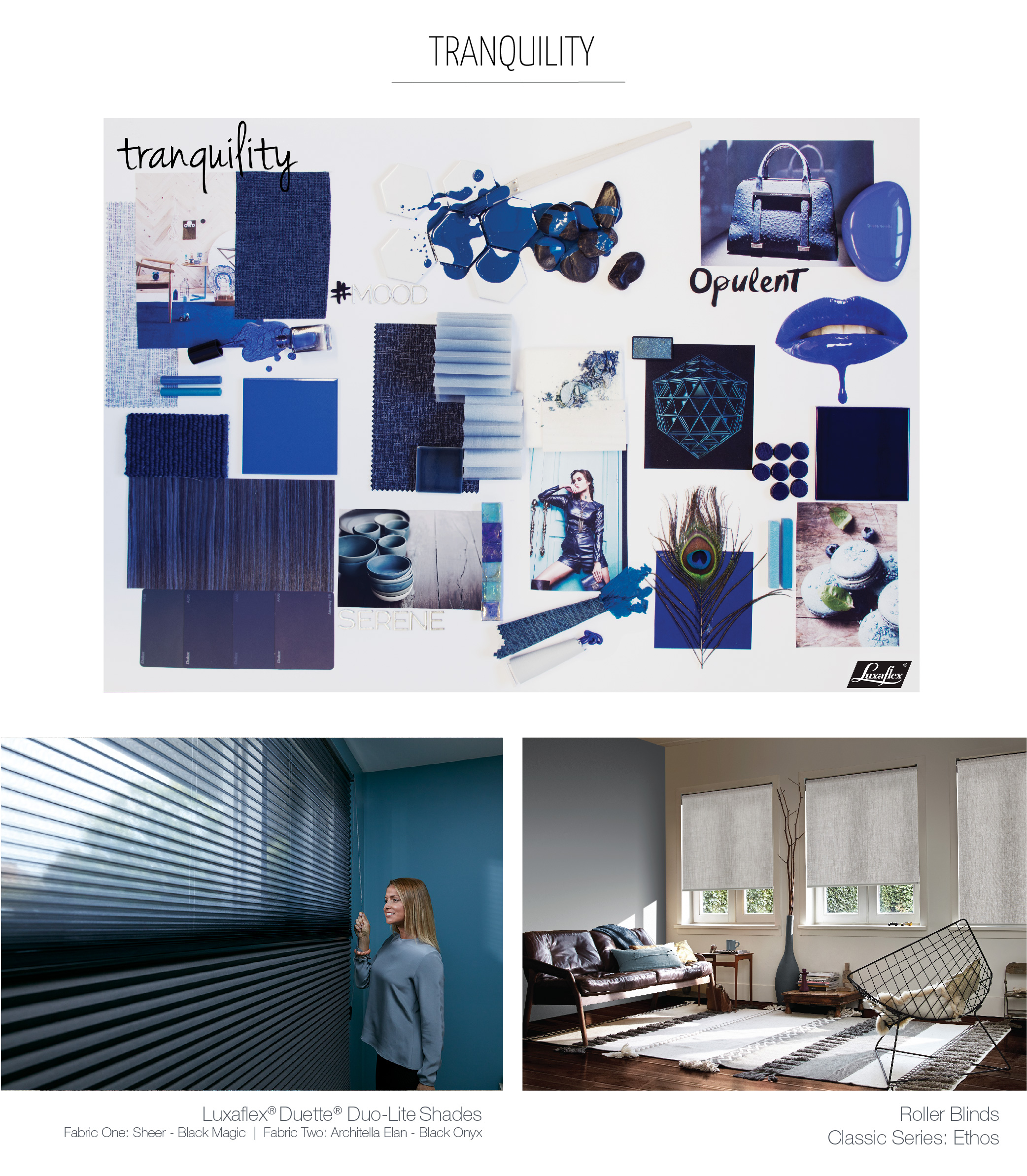 Get the look with Luxaflex fabric ranges Tahlya, Colour: Amalfi or Ethos, Colour: Aquamarine.