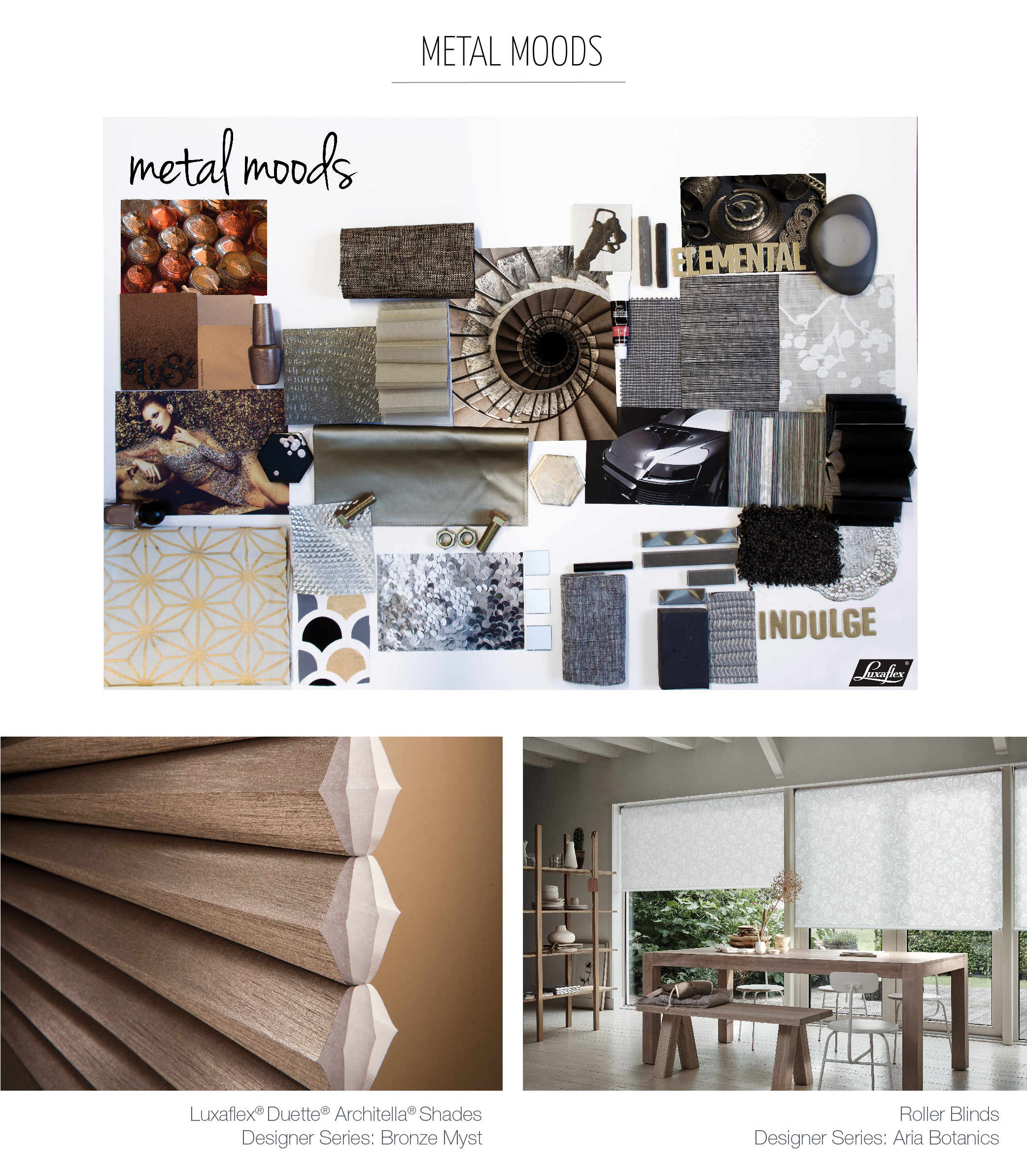 Get the look with Pirouette Shadings, Range: Satin Metallic or Fabric Collection: Aria Botanics.