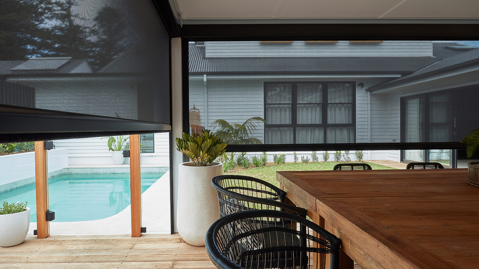 We offer a range of ‘sunscreen’ fabrics in the Luxaflex® Evo Awnings range. You can select the level of view-through for your awning, unlike traditional canvas fabrics which have a solid backing. Sunscreen fabric has an open weave which provides heat and light control – yet allows you to maintain your view. It’s commonly used on straight drop and pivot arm awning styles.