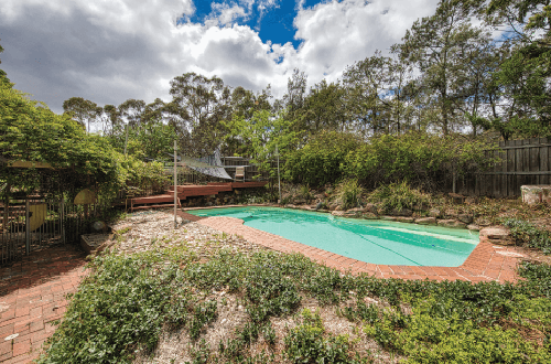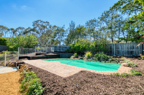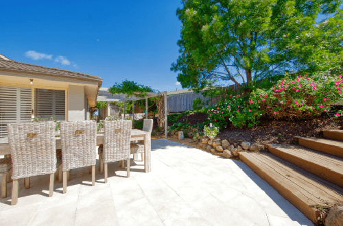 Limestone pavers helped brighten up what now looked like a very large outdoor entertaining space. Charlie added furniture and a compliant fence to the pool which after pruning was now in clear sight.