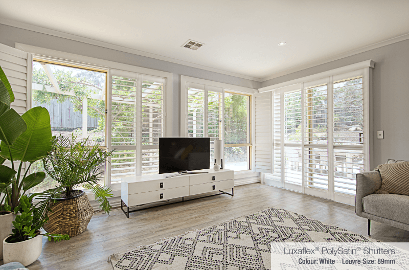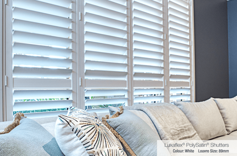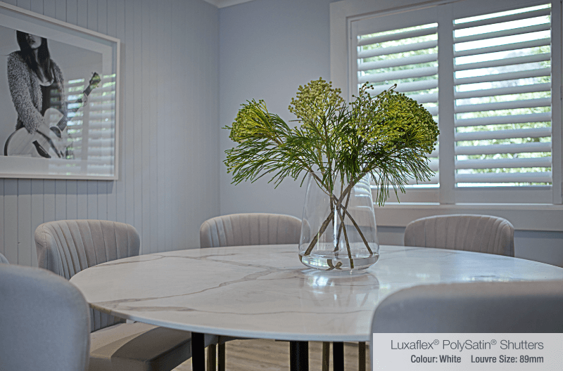 Luxaflex® PolySatin Shutters were installed throughout, helping to create a light and airy mood to accentuate the Hamptons feel Shaynna sought to achieve. The clean lines and wooden-look of the white PolySatin Shutters also brought out a strong sense of character, elevating the house to the next level and distinguishing it from similar properties on the market.