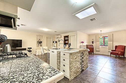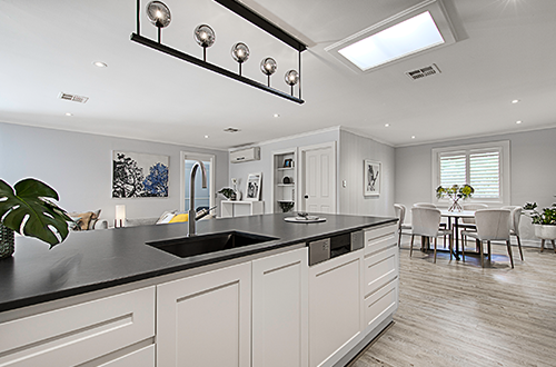 Bound by a tight budget and the risk of overcapitalising, Shaynna had to really pick her battles. Her main focus was the kitchen which was 30 years out of date and had a mish mash of materials including a strange contrast of light and dark colours. Shaynna replaced the island bench with a longer stone bench top to give the kitchen better purpose for a family.