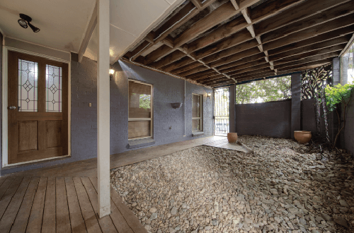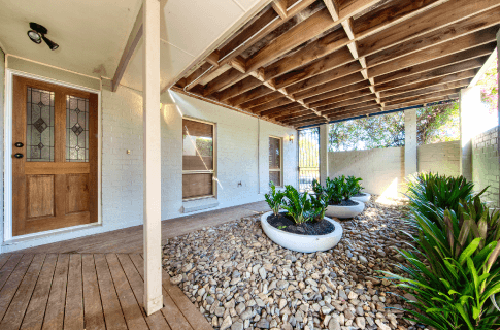 Street appeal is do or die in real estate so Charlie’s first challenge was ditching the purple paint on the façade and retaining walls. He chose a more modern stony colour to appeal to a wider audience and complement the natural colours of the area. His other focus out the front was lightening up the courtyard aka dungeon. He lushed and lightened it up by adding shade tolerant plants in giant white pots and continuing the lighter paint on the walls. Goodbye dungeon, hello grand entrance!