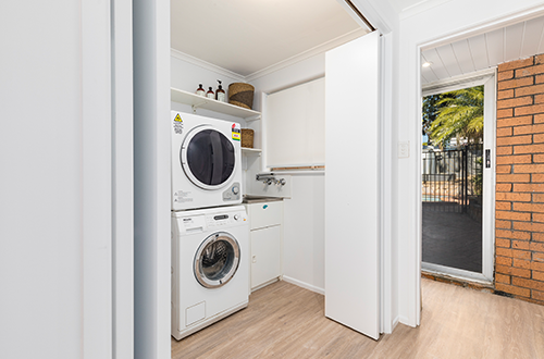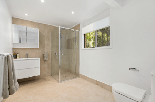 The floor plan downstairs was confusing, so Shaynna decided to improve the layout starting with a lightwell in the entry wall. She put bifold doors in the laundry to hide it. New walls and a door connecting the upgraded downstairs bathroom to the house meant occupants no longer have to access the bathroom through the garage.