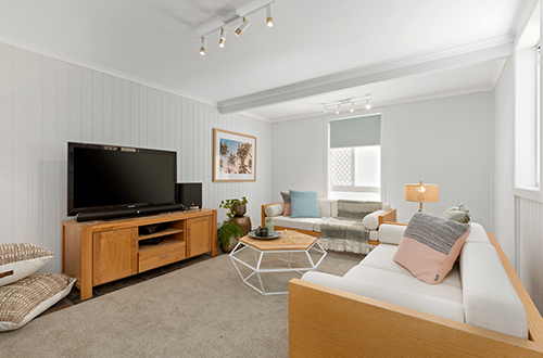 When James agreed to share and buy a home with his wife Jade and in-laws Peter and Desley, the proviso was separate living rooms …for sanity and privacy! In a combined effort to get into the property market, the two couples settled on a house in Brisbane’s Jamboree Heights where they shared the expenses …and the kitchen.