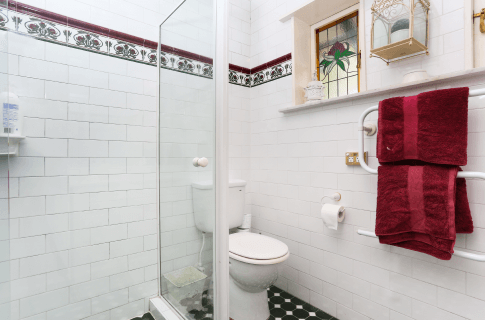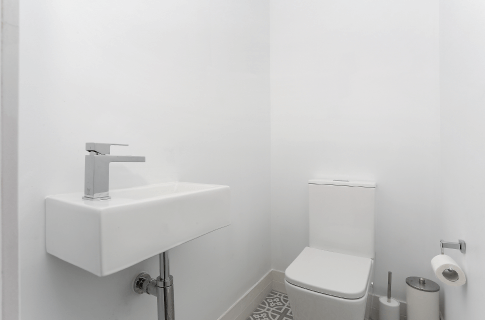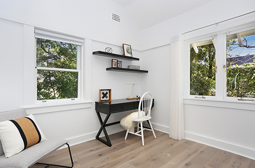 The other problem area was the main upstairs bathroom – which is pokey to say the least. To open it up, Shaynna knocked down a wall into the adjoining bedroom and turned that area into a smaller study space. Across the hall, she also turned an old linen closet into a powder room with a toilet – meaning when the bathroom’s in use, you can still access the toilet.