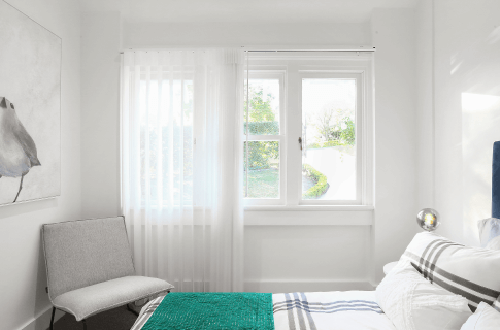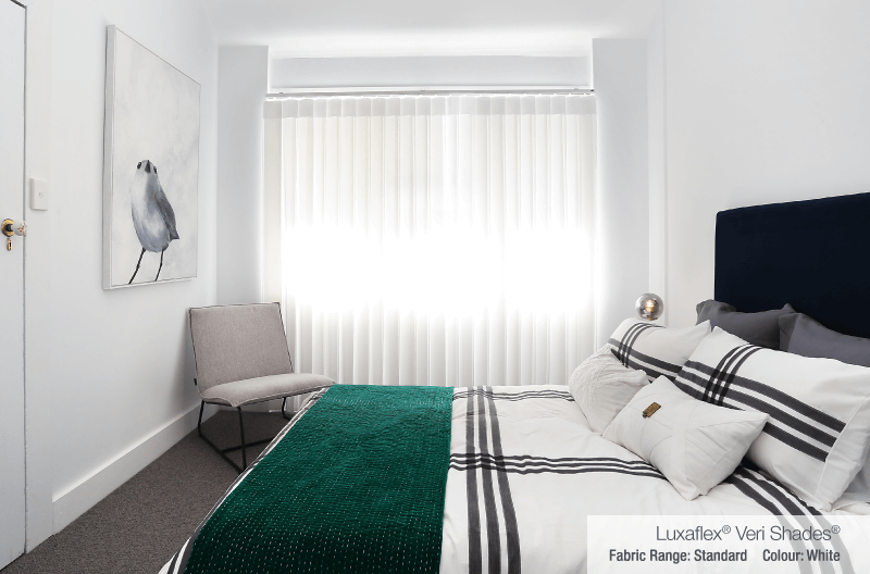 Blockout Roller Blinds were required for the long span of windows in the master bedroom/walk-in-robe to shield out the backyard sun, while all other windows in the five bedrooms were dressed with subtle white Veri Shades to coordinate with the rest of the house. Veri Shades are a popular choice for all types of applications, with a coherent range of fabric and colour options to complement all home interior styles and living needs. A relatively cost effective soft window furnishing solution, Veri Shades can help to greatly modernise and a touch of sophistication to any space.