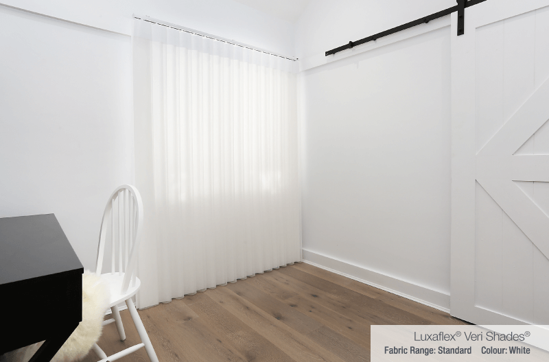Shaynna chose a great new addition to the living room doors – Luxaflex® Veri Shades. Not only whimsical and elegant, these soft sheers & vertical blinds hybrid are highly versatile. The vanes can be separated and anyone can conveniently walk through the blind for seamless indoor-outdoor living - the perfect choice for the French doors leading out to the revamped balcony.