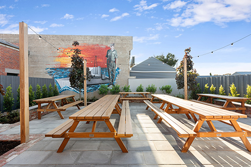 A beautiful mural, created by Melbourne artist Callum, was a major statement in the beer garden. Not only did this hold a special meaning for the town, but it would also help lead the local tourist art trail right into the pub.