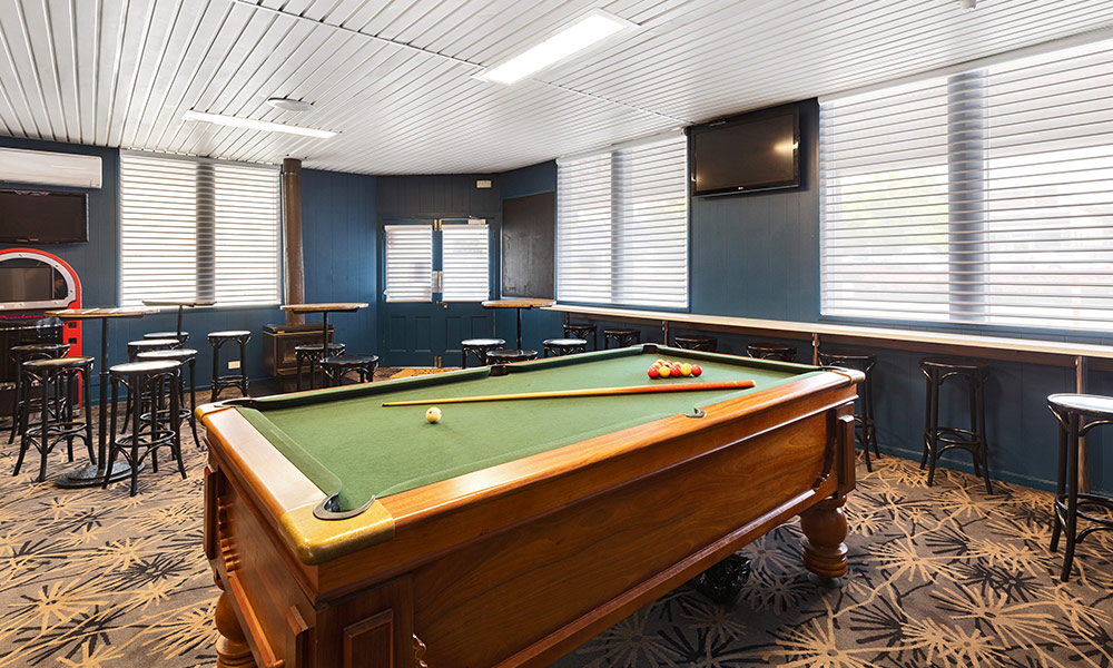 Furniture refresh - In order to honour some local sporting heroes, Shaynna included some priceless memorabilia around the front bar area. In addition to John and Jacquie's pool tables, stylish new stools and tables were also scattered around to provide some much needed extra seating.