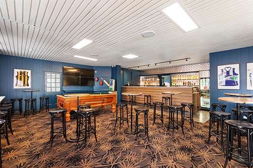 Fresh new flooring - Durable new commercial grade carpet was used all throughout the front bar space, with Shaynna opting for a patterned design that had a slight retro feel for added nostalgia for the locals.