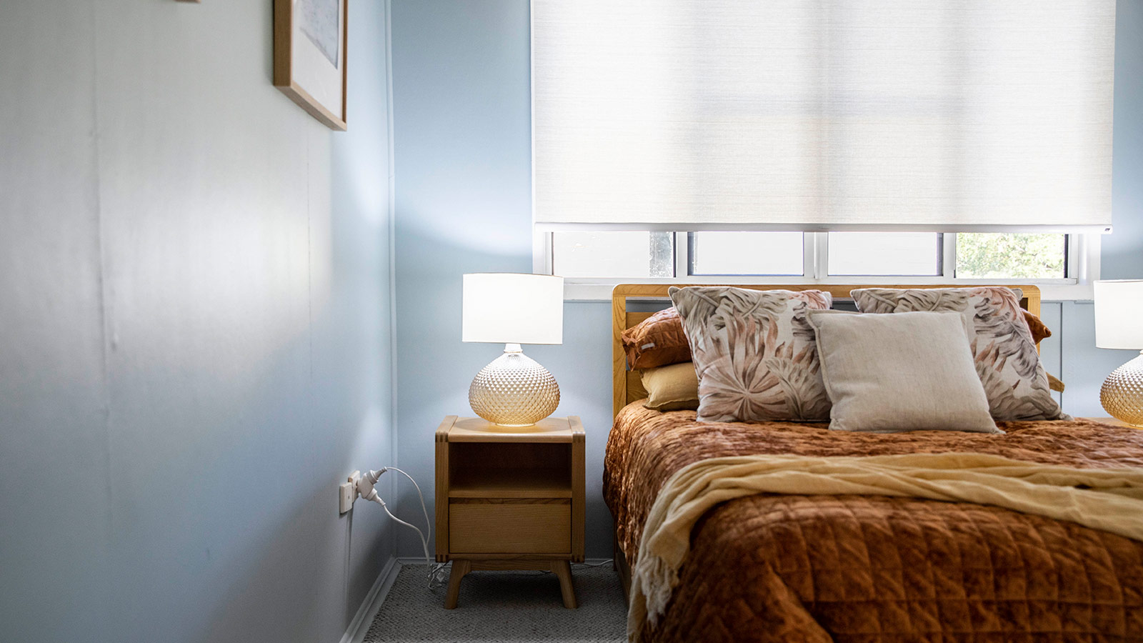 Double Luxaflex® Roller Blinds were used in both the living spaces and bedrooms to add visual sophistication and style to the interiors. With options for both light-filtering and blackout fabrics, these blinds provide complete control over privacy and light, allowing you to create the perfect environment for any room. Double Roller Blinds combine the functionality of two different fabrics in the one Roller Blind system, providing the ultimate in light and privacy control.