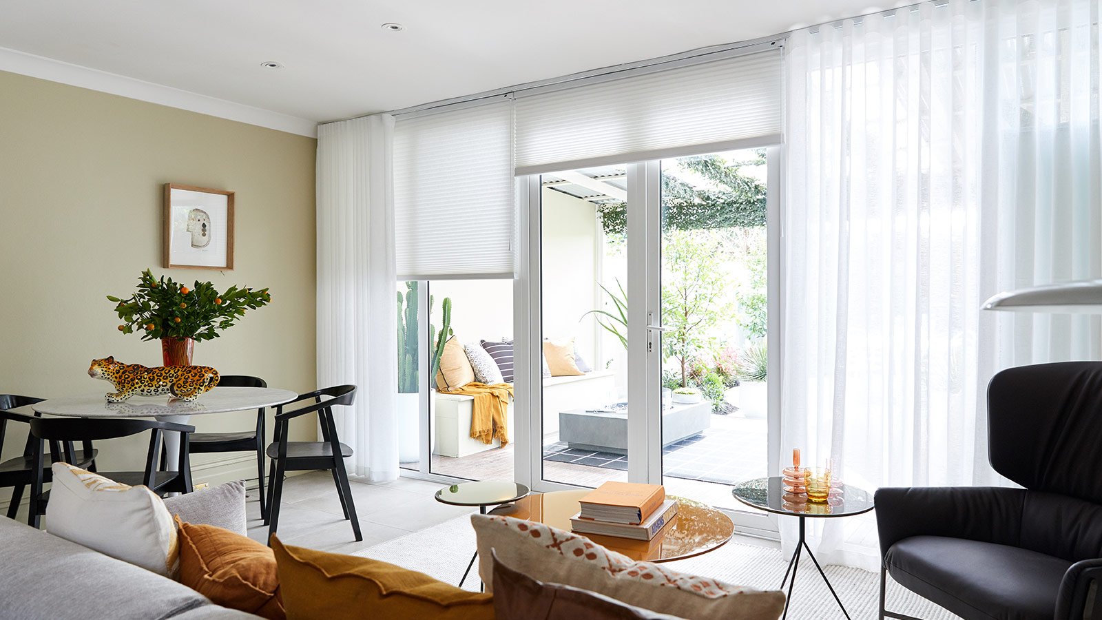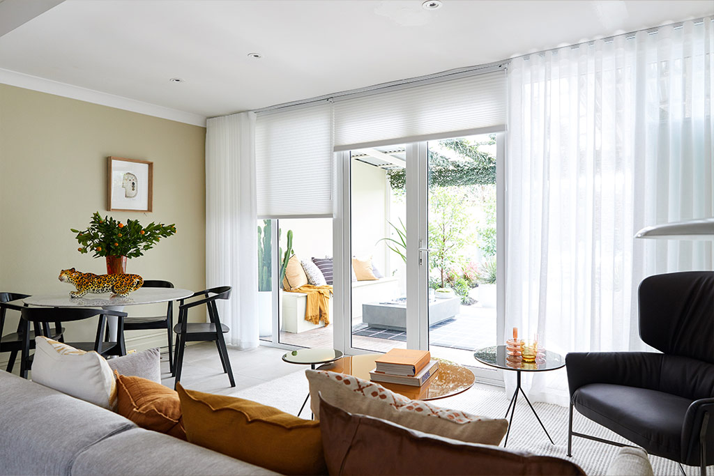 The living room was already one of the best assets of the home, so it was given a light makeover to improve the connection with the outdoors. Luxaflex® Silhouette® Shadings in Originale fabric, and in Linen Flirt colour, were used to allow the owners to control the flow of light from the outside.