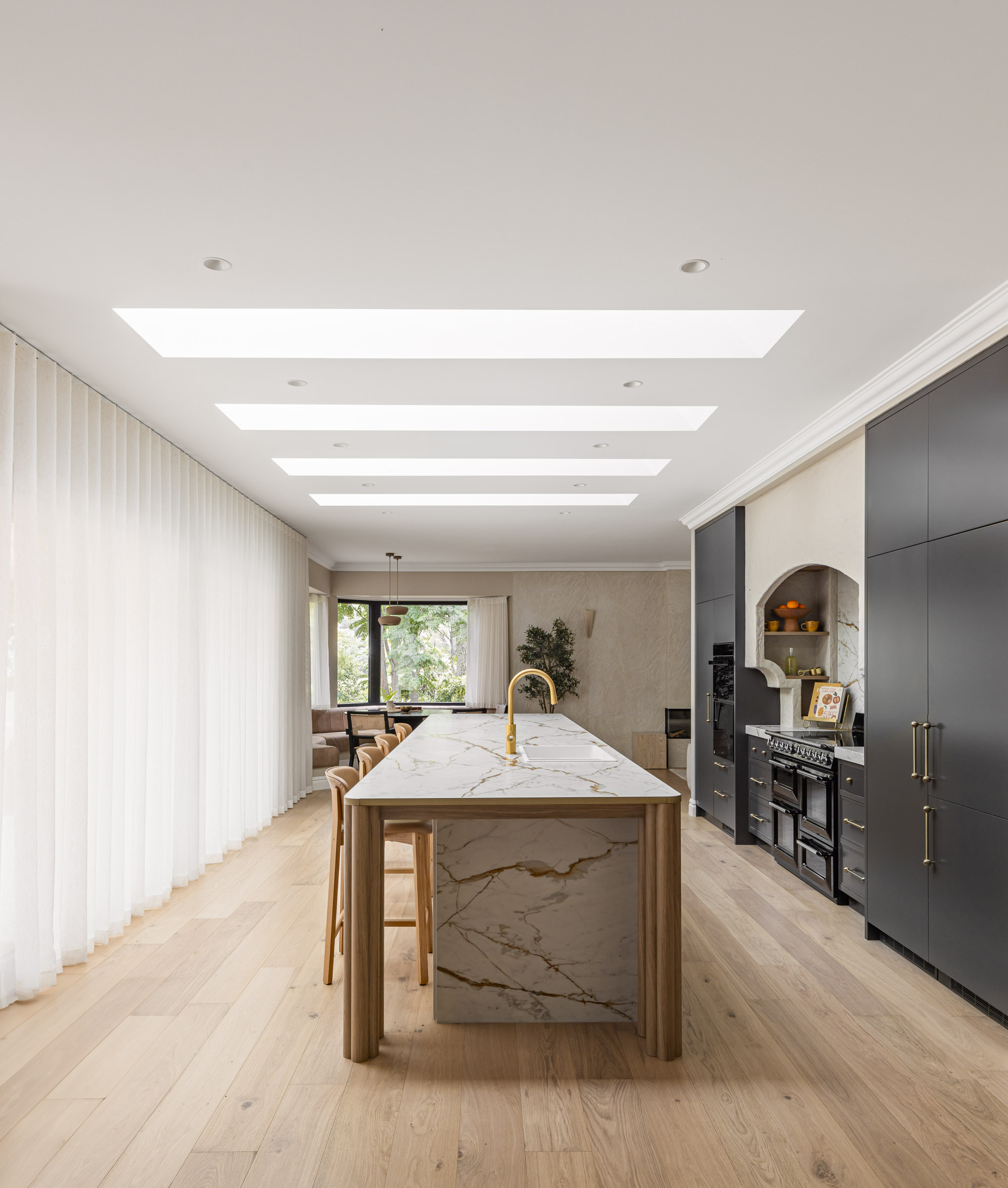 Another standout spot is the breakfast nook—one of Rachel and Ryan’s personal favourites—thanks to its constant stream of natural light. Whether it’s the first coffee of the day or a wind-down glass of wine, the space offers a tranquil escape. “There’s something magical about the way the light falls in that space at all times of the day,” Ryan explains. “It’s the perfect spot to unwind.”