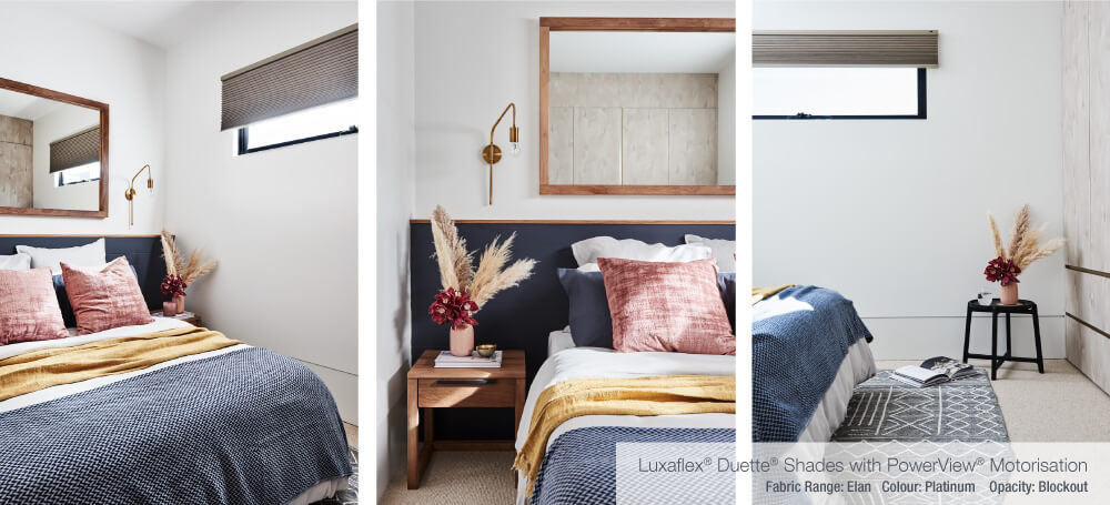 For the Design Duo, the perfect window covering solution for Bedroom 2 and 3 would provide convenient light, privacy and temperature control, whilst adding to the look and feel of each space. Based on this criteria, Luxaflex® Duette® Shades with PowerView® Motorisation were recommended by the Luxaflex® consultant and used to dress the windows in both rooms.