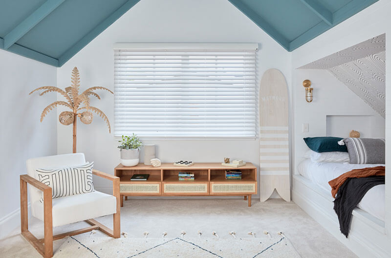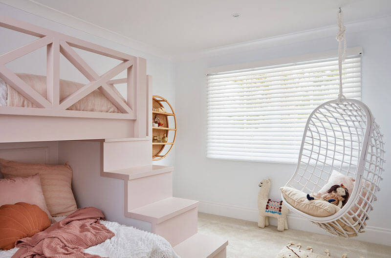 For each bedroom, the Three Birds team chose Luxaflex® Wood Essence Blinds. These offer a practical alternative to timber Venetian blinds and are made of durable polystyrene. Even though they look just like real wood, they offer greater durability and quality – making them the perfect choice for the kids' bedrooms! They're also more resistant to discolouration and warping, which means they'll stand the test of time.