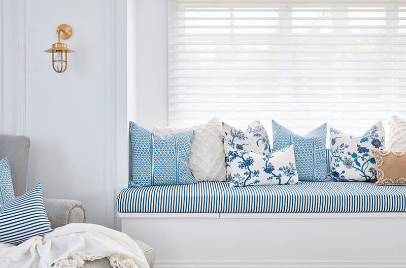 Luxaflex® Silhouette® Shadings complement the style of this beautiful room and add an extra element of sophistication. Combining on-trend aesthetics and practicality, they are made from an innovative material that allows you to see outside, but restricts the view from the street for privacy.