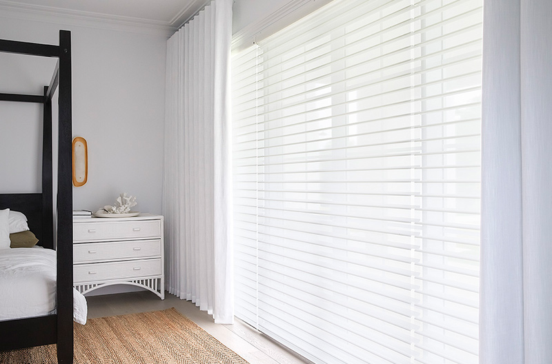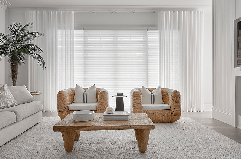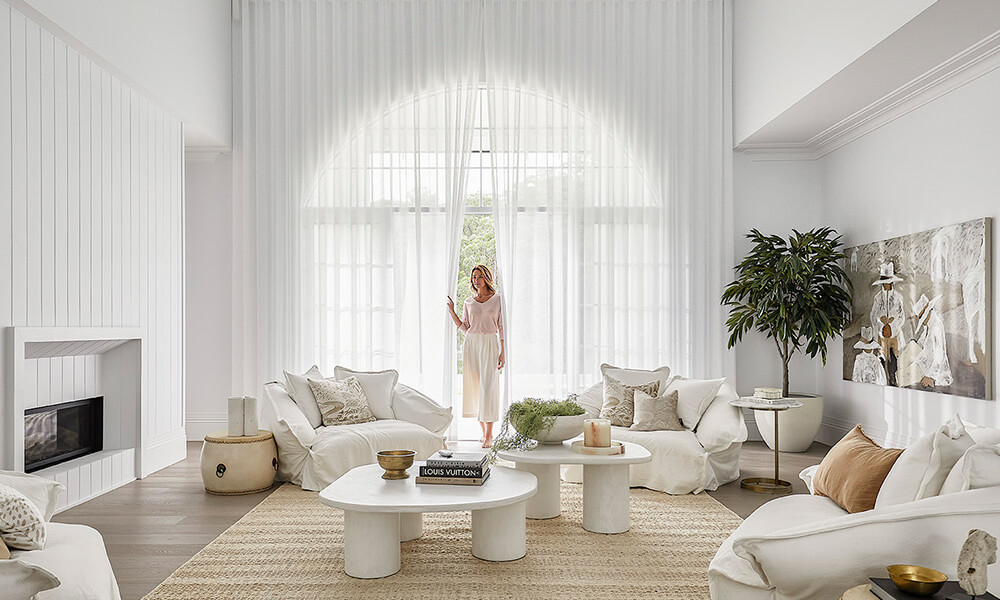 To add an additional element of softness to the room, they also added a sheer Luxaflex® Curtain with S-Wave design which opens from the centre.
