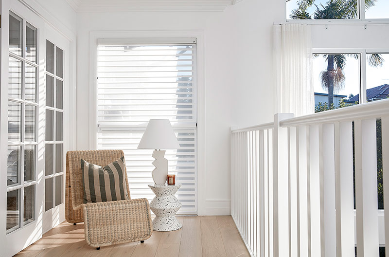 In the upstairs area of this two-storey home, the team used Luxaflex® Silhouette® Shadings in Nouveau Translucent fabric - for both the spacious rumpus room and the upstairs hallway.