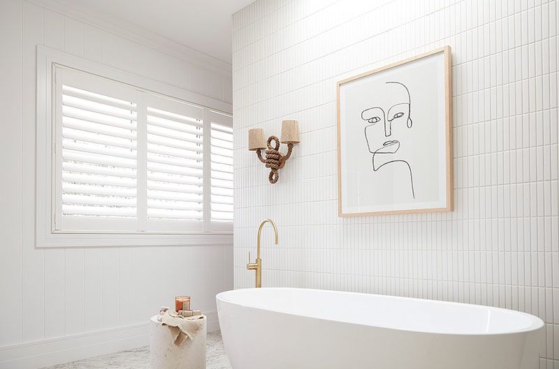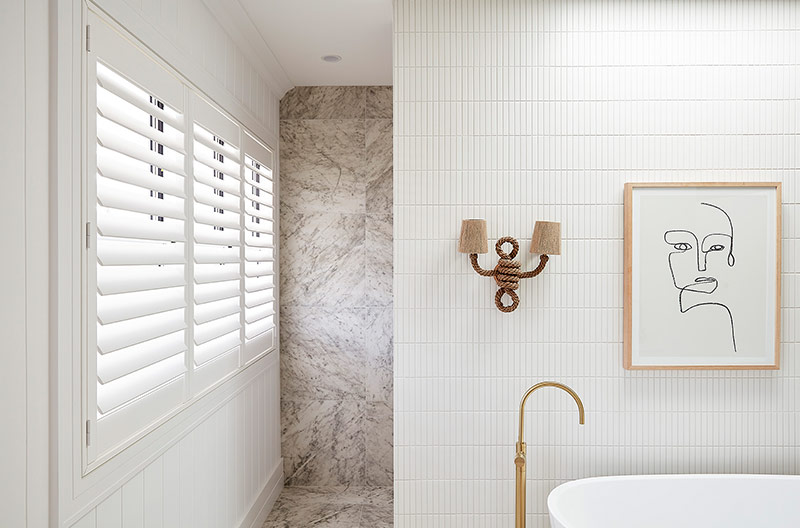In both the ensuite to the master bedroom, and the main bathroom, the team opted for Luxaflex® PolySatin Plantation Shutters. Proudly made in Australia, these shutters are an ideal option for wet areas as they are impervious to moisture, and won't blister, peel or fade. They are also backed by an all-important 20-year warranty.