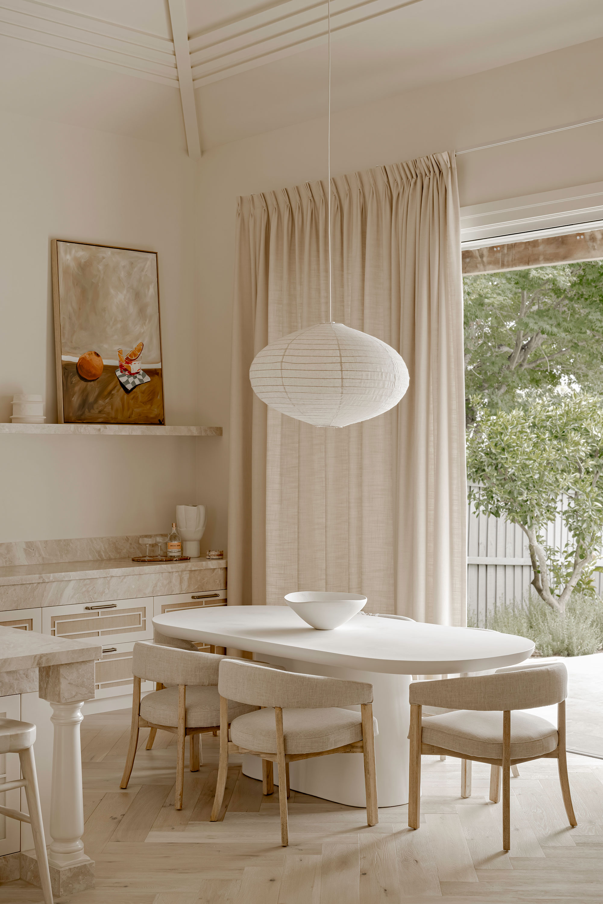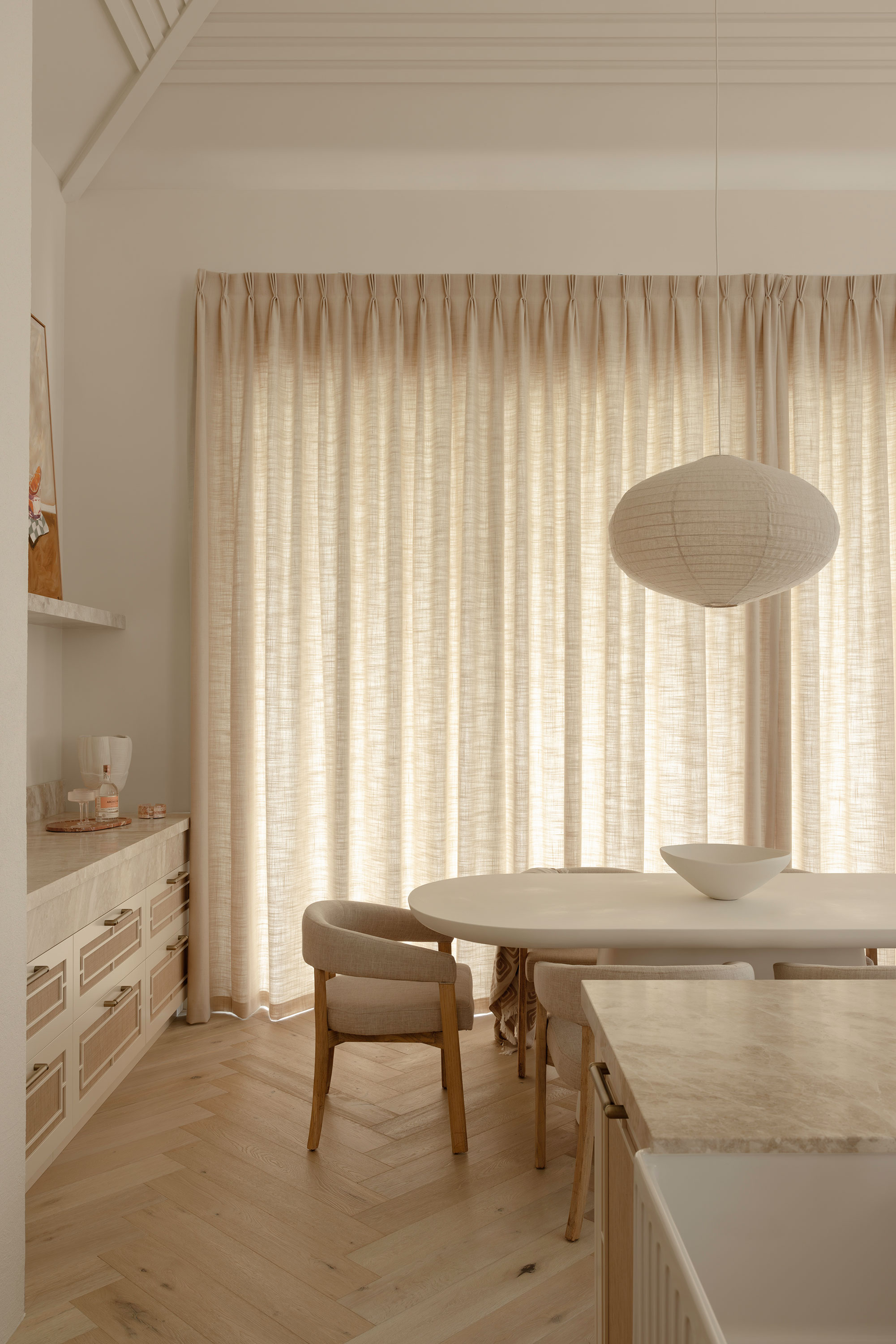 We landed on Kori curtains in Eggshell - a divine thermal-lined fabric that strikes the perfect balance between light filtering and block-out while draping like a dream.