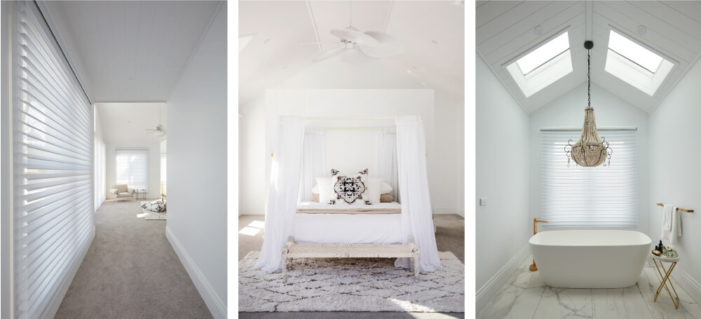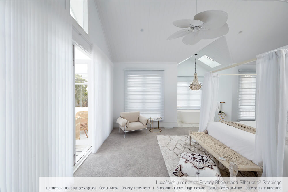 Luxaflex® PowerView® Motorisation was the operating method of choice for these Softshades. The choice of motorised control will ensure ease of operation, precise light and privacy control, added customisation and convenience. This intelligent technology will also allow blinds to operate with a simple press of a button, tap of a mobile device or by scheduling scenes that will automatically activate throughout the day. With PowerView® Motorisation, the perfect addition to any forever home, the Luxaflex® blinds in Bonnies master bedroom are not only stylish but smart too!
