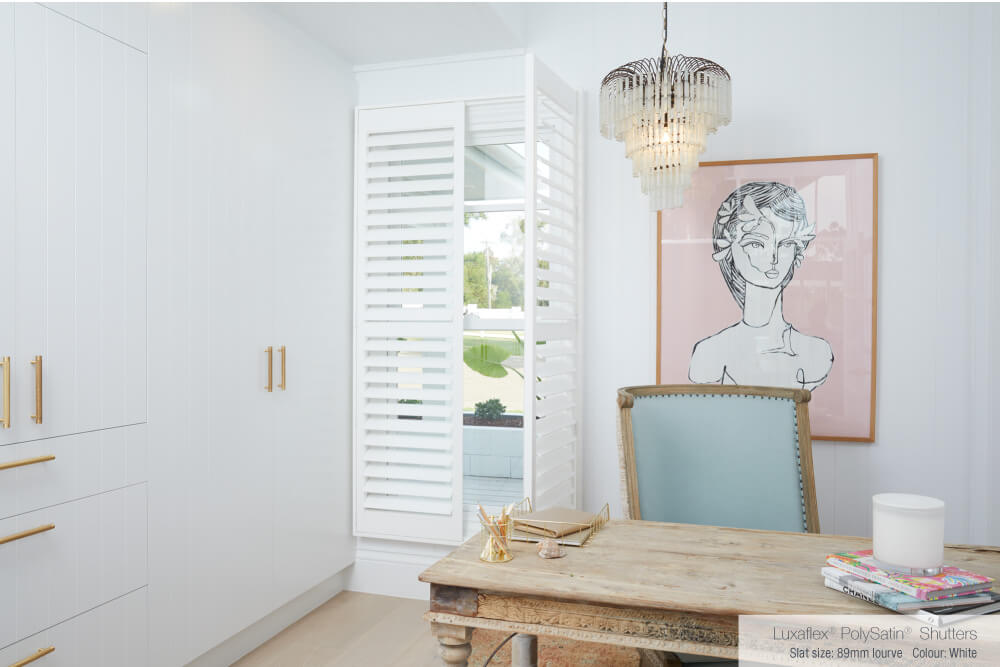 Luxaflex® PolySatin Shutters were the perfect blind solution for Bonnie’s home office. The Shutter louvres can be simply adjusted for privacy and to control the light and glare especially when working on the computer.