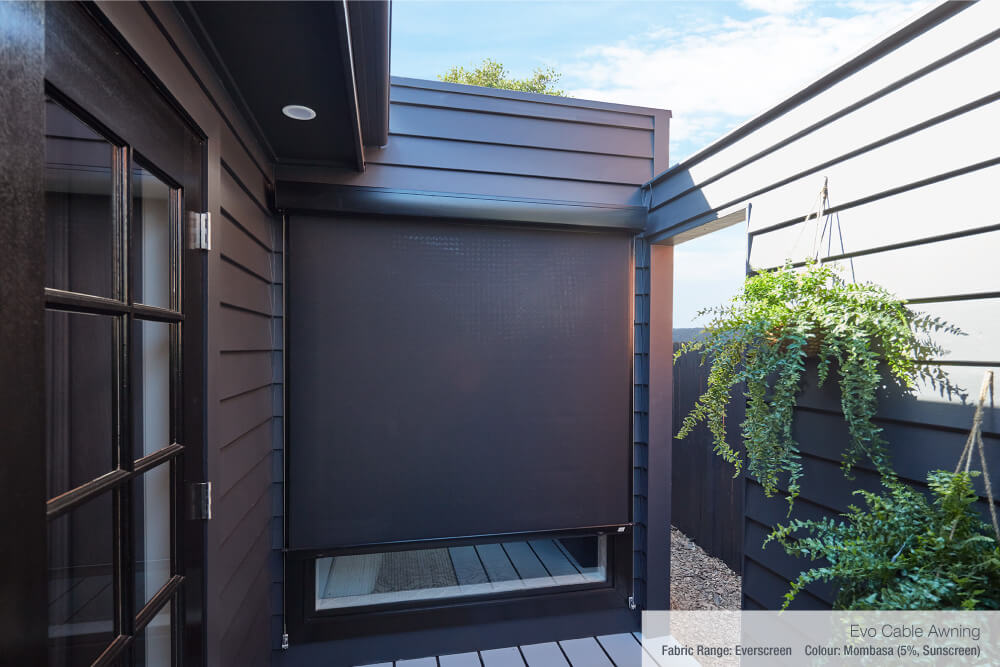 Bonnie opted for the Evo Awning hardware and fabric in the colour ‘Mombasa’, which worked perfectly with the Dulux paint colour used on the house façade. This stylish straight drop awning also provides sun and UV protection and will help to block out the unwanted heat coming through the glass in summer.