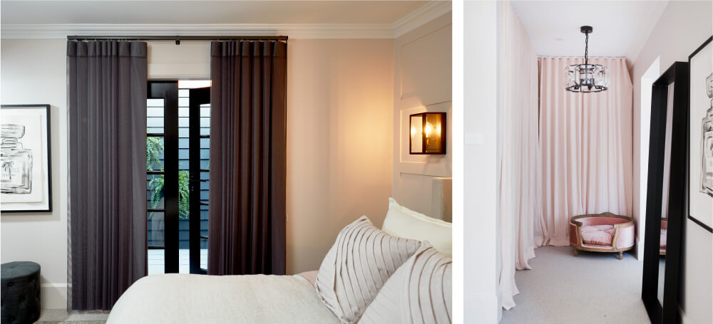 Luxaflex® LumiShade® in the colour ‘Slate’ was chosen to dress the French doors in the Master suite. The bold choice in colour, paired with the soft fabric finish of these shades, worked perfectly with the retro, ‘old school glamour’ style of the room. The ability to walk through these blinds, even when closed, was ideal as the doors opened out onto a private deck.