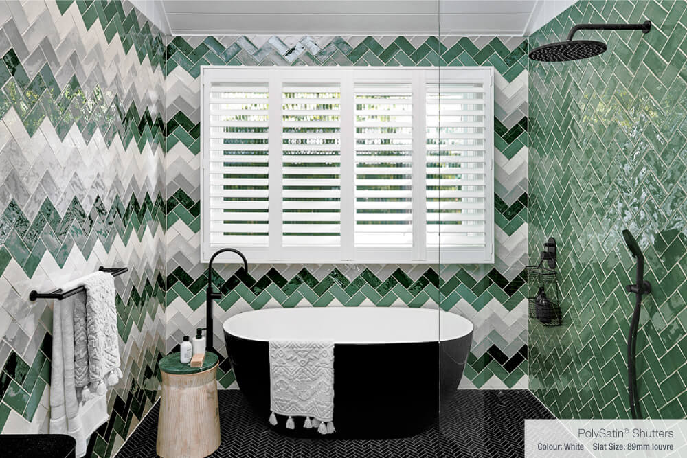 Luxaflex® PolySatin Shutters were the window covering of choice in the master bathroom. A favourite of the Three Birds team, these Shutters add a touch of simplistic elegance to any home décor and are undoubtedly the ultimate solution for wet areas such as bathrooms and laundries. Backed with a 20 year warranty, PolySatin Shutters are impervious to moisture and will not blister, peel or fade, ensuring a quality finish for years to come.
