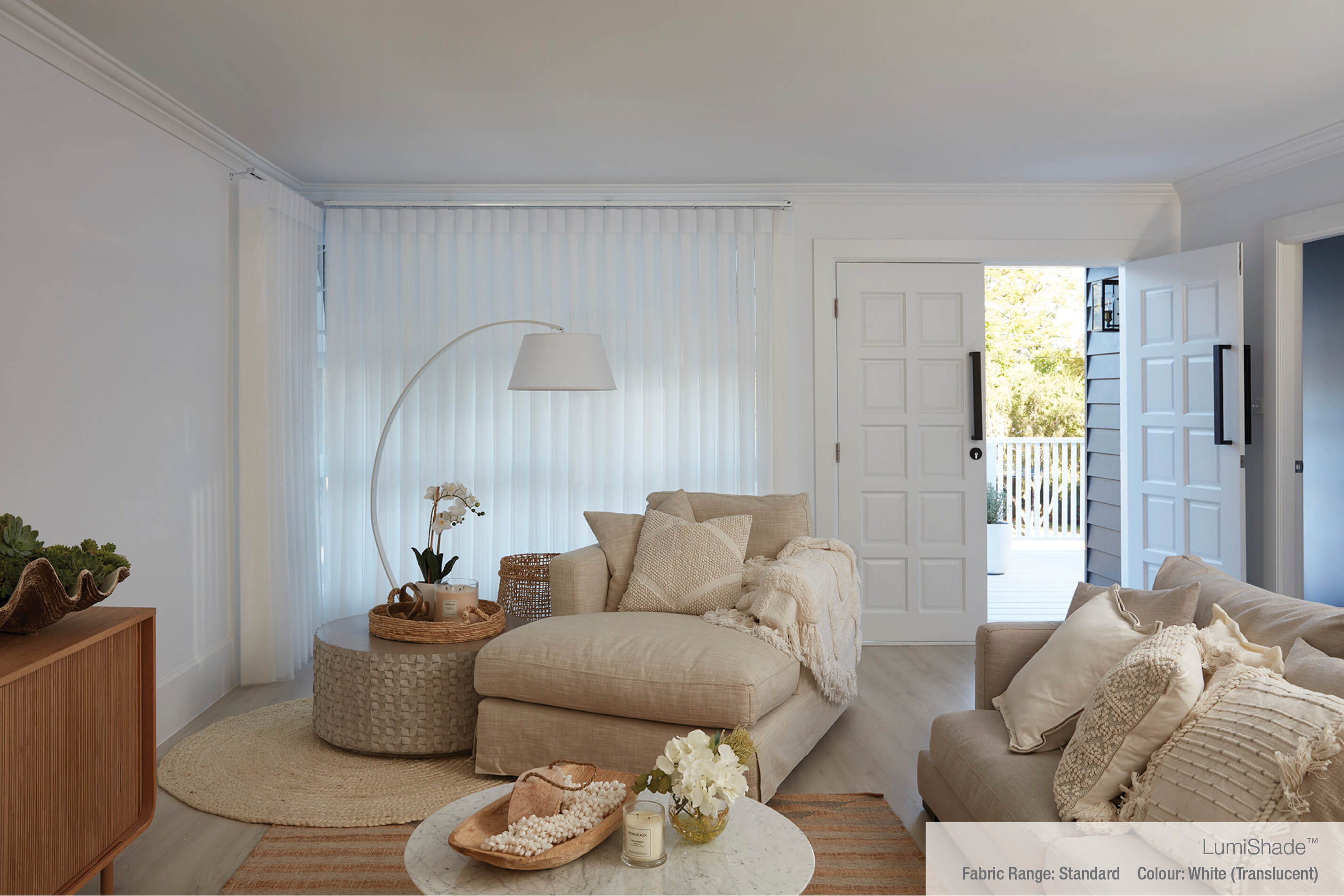 A contemporary take on a classic window covering, Luxaflex® LumiShade® combines the versatility of a vertical blind with the elegant appeal of a soft window furnishing. Featuring the premium Luxaflex EDGE Vertical track system and soft sheer fabric, Luxaflex® LumiShade® provides the perfect balance of style, durability and child safety features and was a perfect solution for this gorgeous family home.