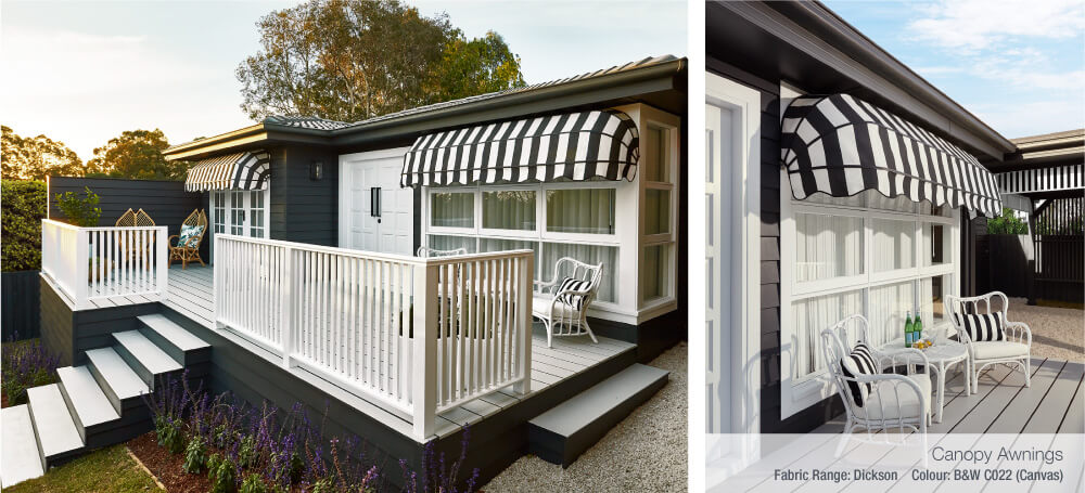 You just can’t go past the charming Luxaflex® Canopy® Awnings that were used to add character and dimension to the front façade. The addition of these traditional awnings in a black and white striped fabric, worked perfectly with the colour scheme and certainly added to the chic ‘French flavour’ of the house.